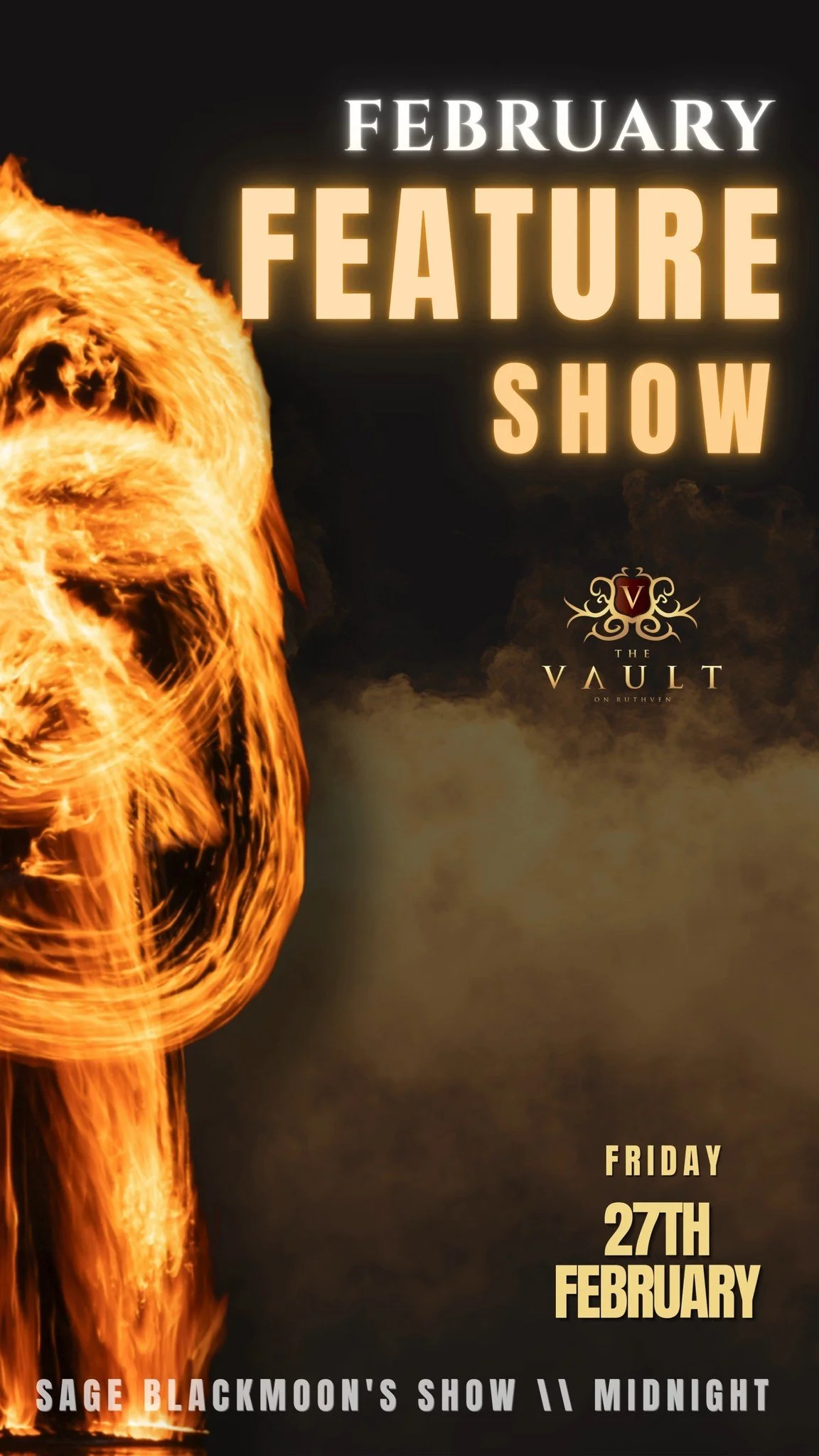 On Friday 27th February, The Vault transforms into a space of dark elegance and provocative storytelling. From the moment doors open, guests are welcomed into a curated environment of rich ambience, striking visuals, and captivating performances that push boundaries while honouring respect and mutual consent.