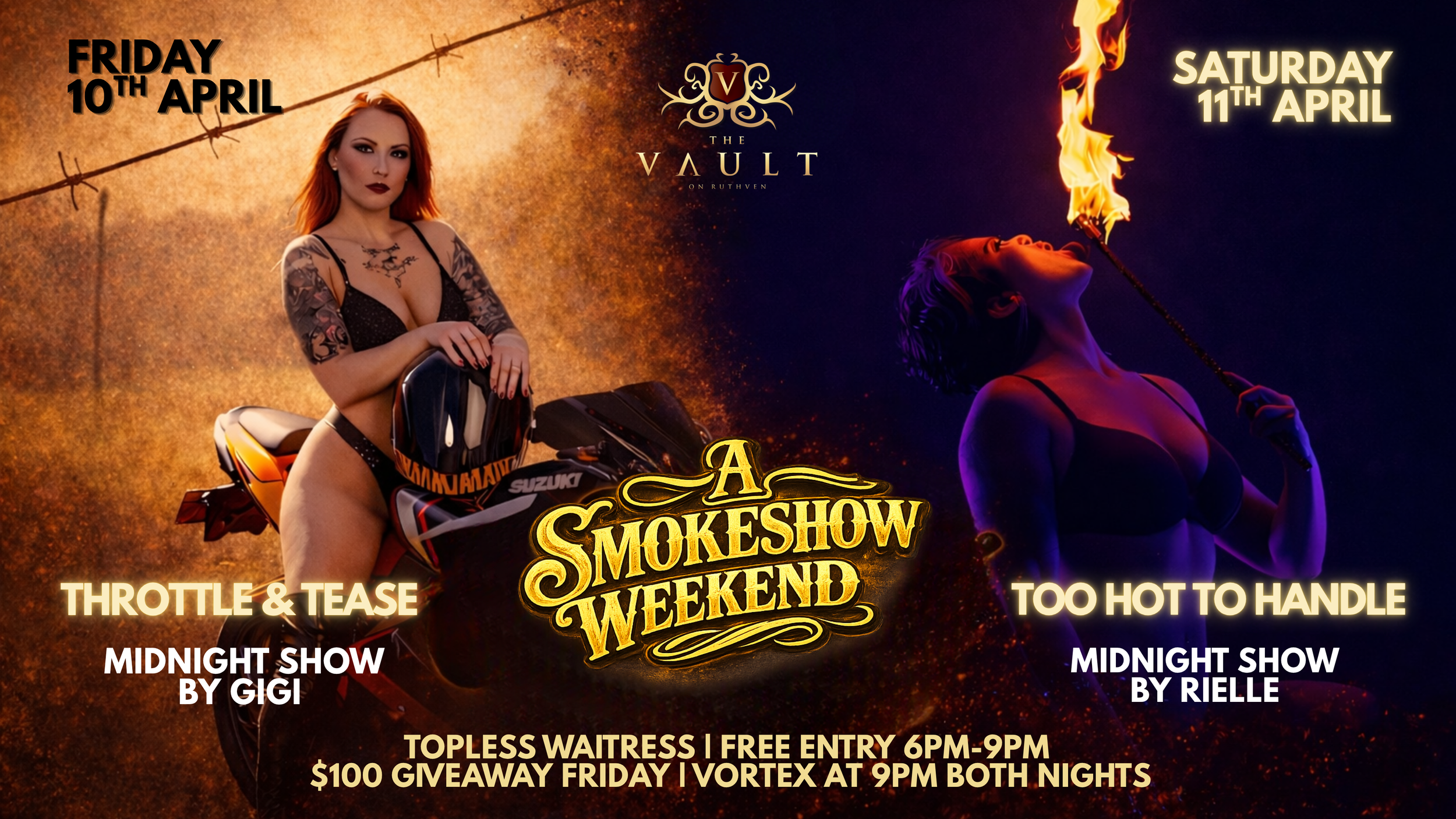 A Smokeshow Weekend brings two massive nights to The Vault, leather, fire, and the kind of energy that makes weekends worth talking about